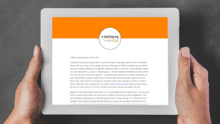 In dieser Rubrik finden Sie aktuelle Informationen rund um das Thema „Hochschullehre mit digitalen Medien“. Unser NotizBlog, Terminkalender und Newsletter informieren über Neues aus der Community, Veranstaltungen, Ausschreibungen und Calls sowie über neue Portalinhalte.