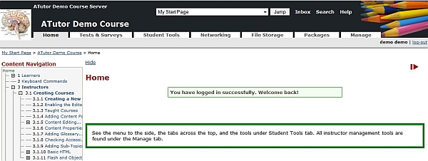 Nach einer Registrierung haben Nutzer Zugang zu einer Produktionsumgebung. Auf dem ATutor Course Server können sie Kurse zusammenstellen, Materialien neu arrangieren oder auch Kurse online unterrichten. Ein entsprechender Lehrzugang steht auf Anfrage zur Verfügung.