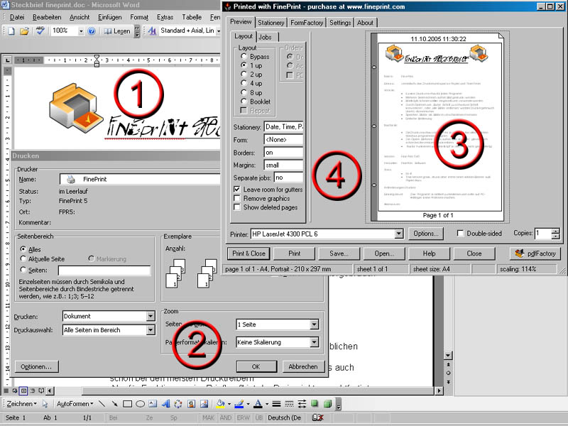 Drucker – Als Drucker wählt man " Fineprint" aus und bestätigt mit "OK". |
