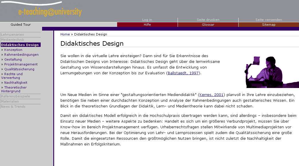 In der Rubrik Didaktisches Design wurden die Vertiefungen Navigationsmetaphern und Navigationshilfen eingefügt.